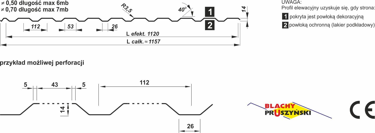 Długość arkusza: 0,5 m - 6 m