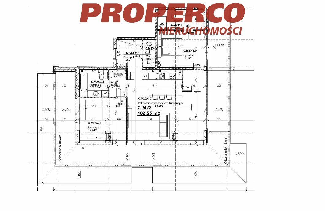 Do mieszkania przynależy duży taras o pow. 118m2 . Ekspozycja okien wschód-północ-zachód.