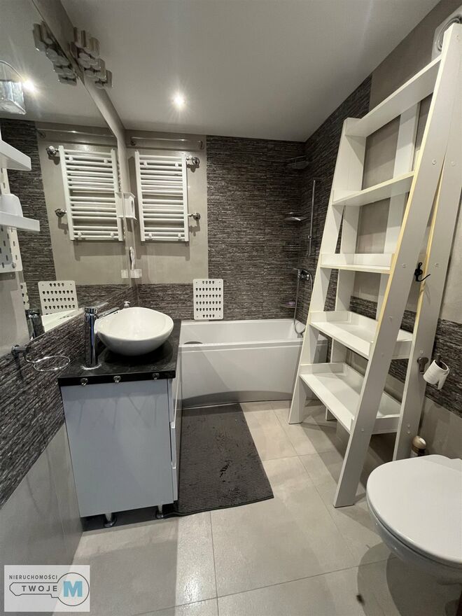 Mieszkanie cechuje się funkcjonalnym układem i dużym potencjałem aranżacyjnym. Lokal cechuj się wysokim standardem. Zapewnia miejsce na wygodną sofę, szafę oraz szafkę RTV. Osobny jasny pokój ustawny i przytulny. Łazienka z wanną umywalką i WC, utrzymana w nowoczesnym stylu. Mieszkanie jest jasne i ciepłe, kominek elektryczny daje ciepło do domu co skutkuję przyjemnym nastrojem w chłodne wieczory, co jeśli po pracy możesz usiąść z książką zrelaksować się w ciszy lub zaprosić znajomych na kolację.