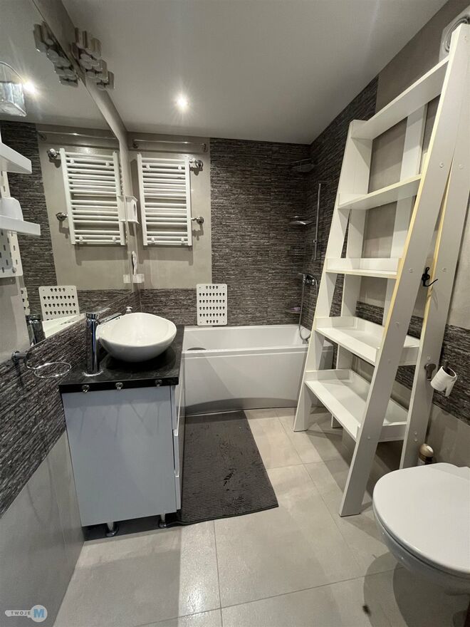 Mieszkanie cechuje się funkcjonalnym układem i dużym potencjałem aranżacyjnym. Lokal w wysokim standardem. Zapewnia miejsce na wygodną sofę, szafę oraz szafkę RTV. Osobny jasny pokój ustawny i przytulny. Łazienka z wanną umywalką i WC, utrzymana w nowoczesnym stylu. Mieszkanie jest jasne i ciepłe, kominek elektryczny daje ciepło do domu co skutkuję przyjemnym nastrojem w chłodne wieczory, co jeśli po pracy możesz usiąść z książką zrelaksować się w ciszy lub zaprosić znajomych na kolację.