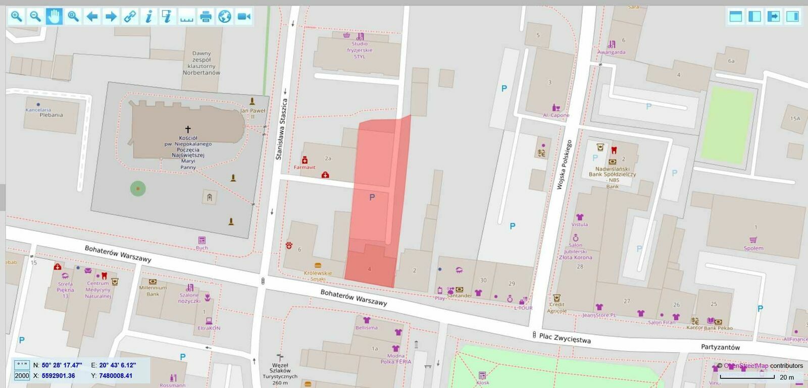 „Społem” Powszechna Spółdzielnia Spożywców w Busku-Zdroju oferuje na sprzedaż nieruchomość gruntową zabudowaną budynkiem handlowo-usługowym, dwukondygnacyjnym, murowanym o powierzchni 220 m2. Budynek wraz z działką o powierzchni 1144 m2 zlokalizowany w ścisłym centrum uzdrowiskowego miasta Busko-Zdrój przy ul. Bohaterów Warszawy 4.Jest to budynek częściowo podpiwniczony, uzbrojony w sieć wodno-kanalizacyjną oraz energetyczną. Działka ma dostęp do drogi publicznej za pomocą istniejącego zjazdu od strony ul. Sądowej. Teren działki jest ogrodzony.
