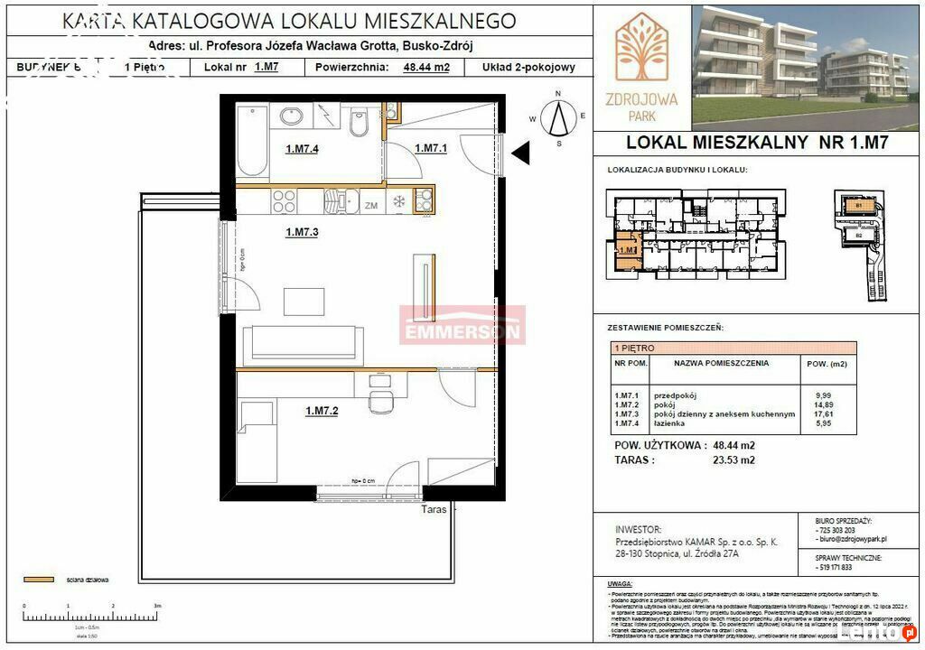 Oferta dotyczy mieszkania 1.M7 - 48,44 m2 w nowo realizowanymprojekcie ZDROJOWA PARK.